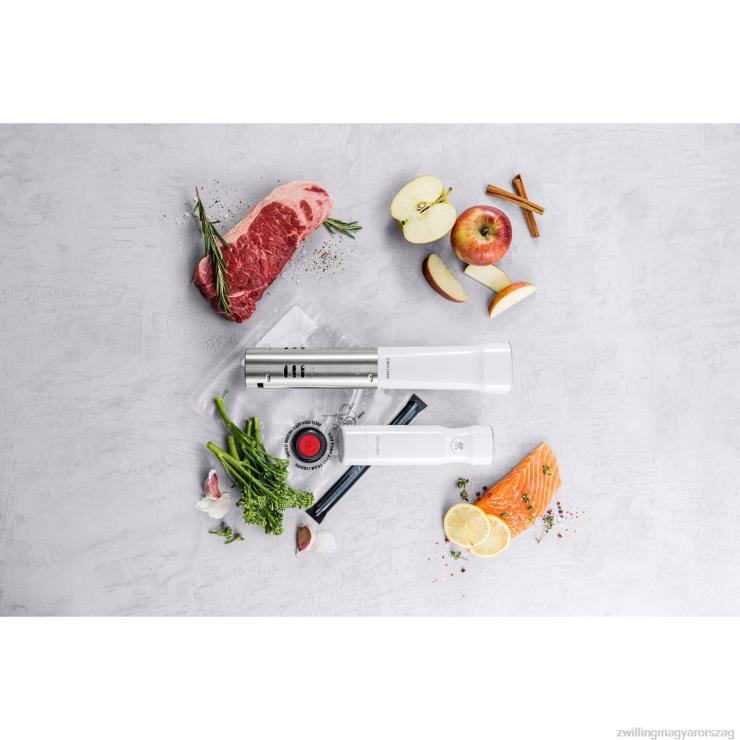Az elegáns sous vide rúd éttermi szintű hőmérsékletszabályozást biztosít az otthoni főzés során. az elegáns kialakítású kompakt sous vide stick LED-touch kijelzőt, rozsdamentes acél fűtőburkolatot tartalmaz beépített minimális és maximális vízszint-érzékelővel, valamint praktikus időzítő funkciót. A pontos hőmérséklet-szabályozás biztosítja, hogy az étel az Ön által kiválasztott pontos készre készüljön. beépített bilinccsel felszerelve a sous vide pálca bármely edényhez használható a konyhában, nincs szükség speciális felszerelésre. és a pálca használható a zwilling fresh & save vákuumzárású újrafelhasználható zacskókkal együtt.